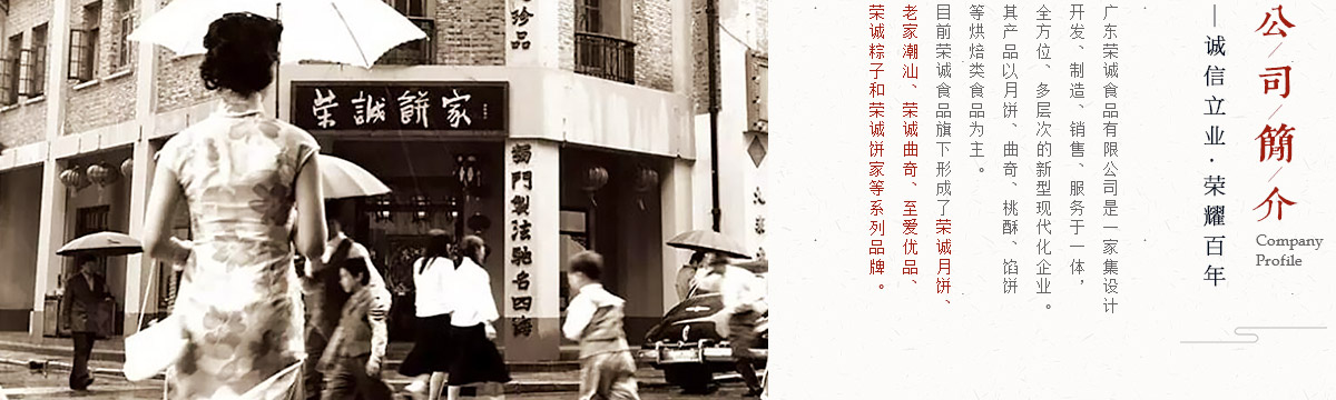 廣東榮誠(chéng)食品有限公司是一家集研發(fā)、生產(chǎn)、銷(xiāo)售于一體的現(xiàn)代化食品企業(yè)。主要生產(chǎn)月餅、粽子、潮膳、曲奇、雞蛋卷、鳳梨酥、蛋黃酥、腐乳餅、面包、蛋糕等一百多個(gè)食品品種。榮誠(chéng)深耕食品行業(yè),在產(chǎn)品研發(fā)、品牌文化、產(chǎn)品質(zhì)量、包裝創(chuàng)新、人才團(tuán)隊(duì)、營(yíng)銷(xiāo)網(wǎng)絡(luò)等方面逐漸建立起核心競(jìng)爭(zhēng)優(yōu)勢(shì),旗下創(chuàng)立了榮誠(chéng)月餅、老家潮汕、榮誠(chéng)和粽、榮誠(chéng)餅家、榮誠(chéng)曲奇、至愛(ài)優(yōu)品等幾大品牌,品牌美譽(yù)度連年提升,其中“榮誠(chéng)月餅”已躋身國(guó)內(nèi)月餅行業(yè)前茅,產(chǎn)品暢銷(xiāo)全國(guó)各地。